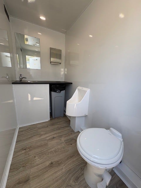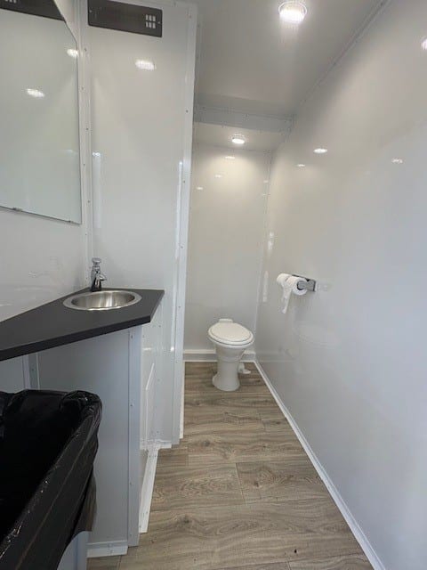 The Prince & Princess trailer strikes the perfect balance of elegance and efficiency. Featuring two private female stalls and one male stall, it is designed to accommodate mid-sized gatherings with ease. The seamless interiors, refined fixtures, and spacious layout ensure a comfortable and stylish experience for all guests. With efficient climate control, LED lighting, and premium amenities, the Prince & Princess is an excellent choice for weddings, private parties, and upscale events seeking both practicality and luxury.